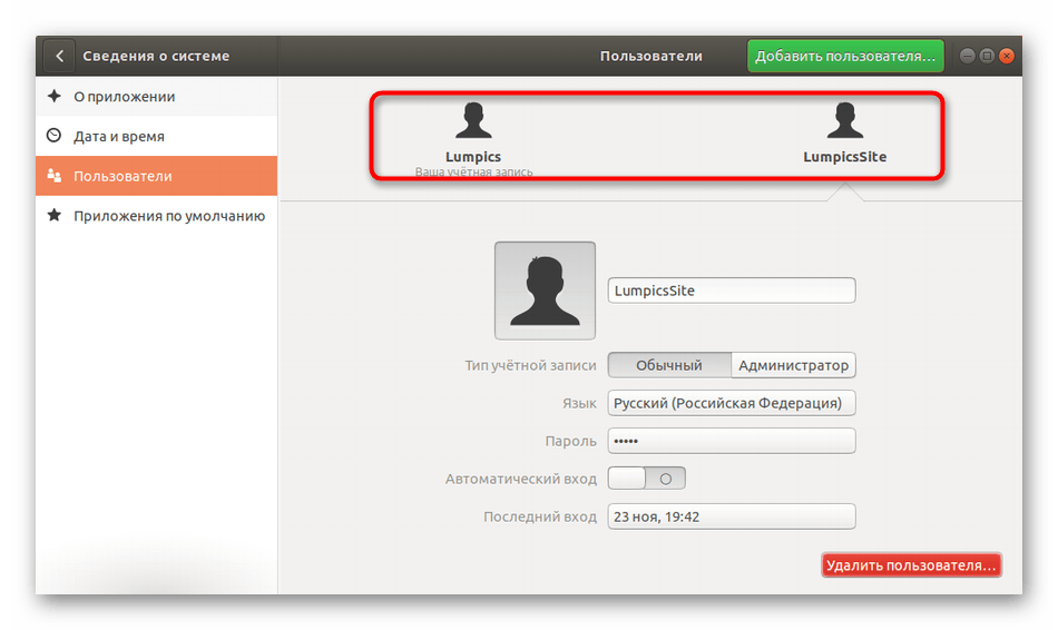 - Удалить пароль пользователю. После этого пароль будет пустым, и пользователь сможет входить в систему без предъявления пароля.