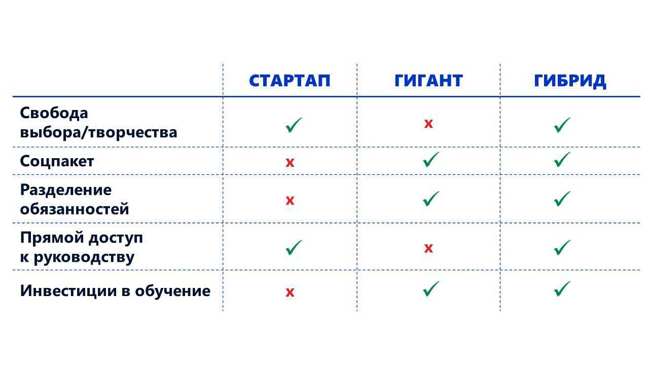 Кроме описанных рисков, многие делают выбор в пользу крупной корпорации за возможность обучаться и быстро расти. Для ИТ-рынка этот фактор невероятно важен: айтишник должен всегда быть на острие технологий. Иначе составить конкуренцию другим экспертам будет трудно.