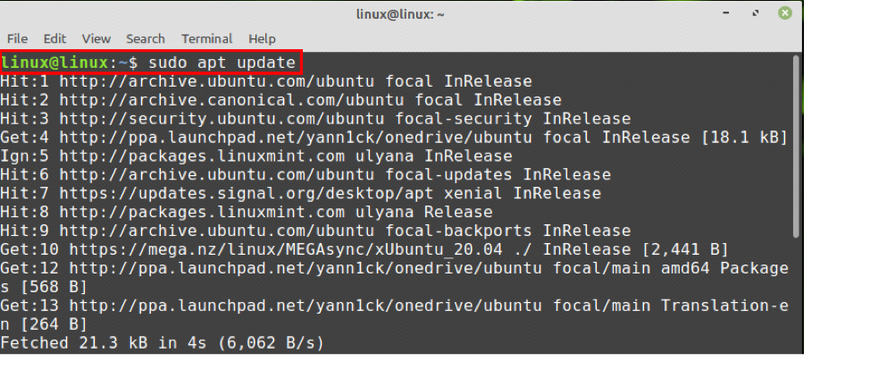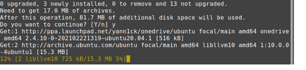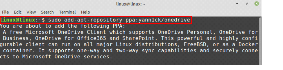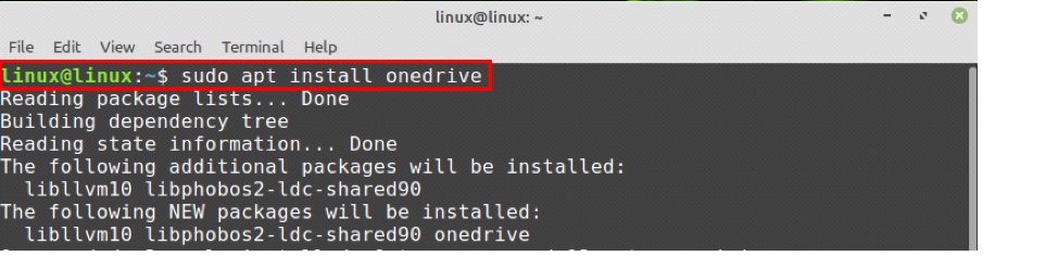 Once the apt-cache is updated successfully, we can install OneDrive from the Linux Mint standard repositories using the command: