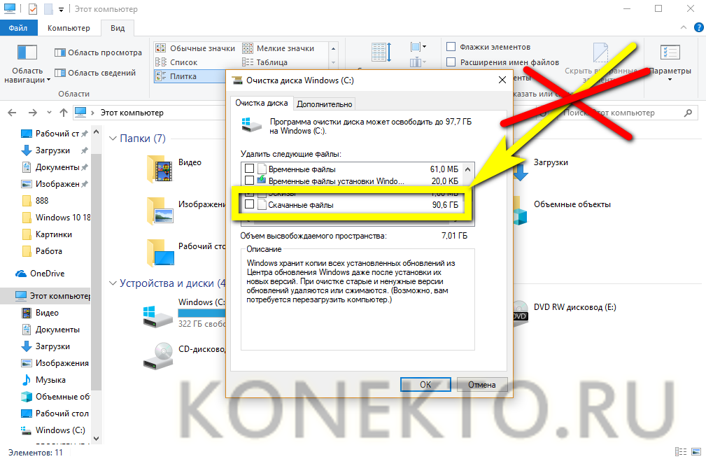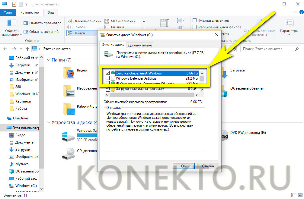 И, убедившись, что теперь можно очистить куда больше мусора, аккуратно и вдумчиво отметить галочками лишние группы файлов. Так, пользователь может без каких-либо последствий для работоспособности Windows стереть загруженные обновления, журналы и данные «Защитника».