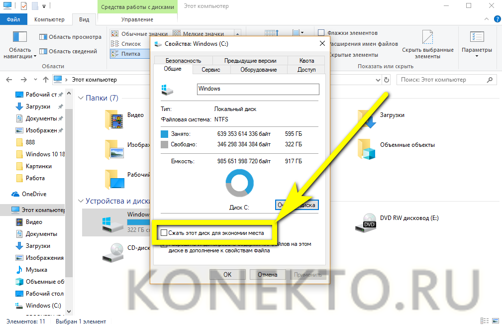 Чтобы сэкономить чуть больше минут в дальнейшем, можно установить галочку в чекбоксе «Сжать этот диск для экономии места».