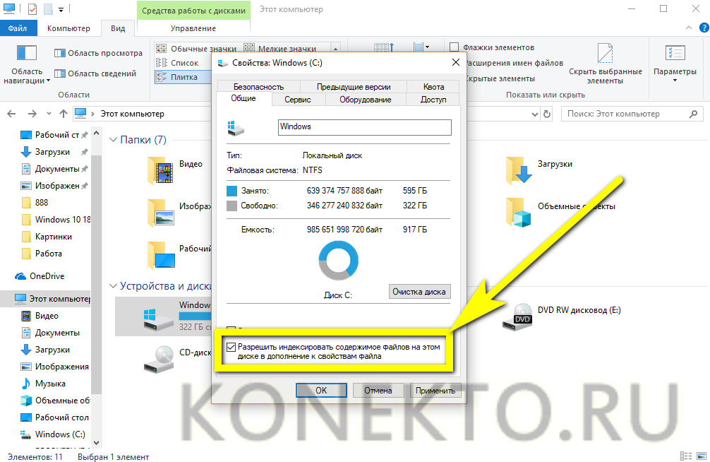 И убрать — в чекбоксе «Разрешить индексировать содержимое».