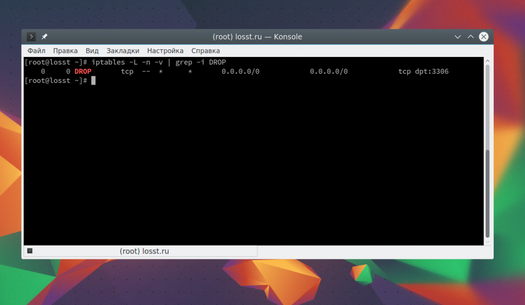 Например, если мы хотим заблокировать порт iptables mysql, то необходимо выполнить: