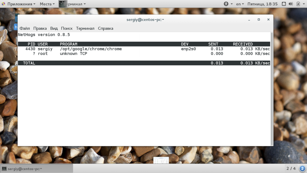 Nethogs — это достаточно интересная утилита для мониторинга сетей, которая выделяется среди других. С помощью нее можно посмотреть какой процесс создает тот или иной трафик. Здесь отображаются PID процессов и имена пользователей, отсортированные по занимаемой пропускной способности сети: