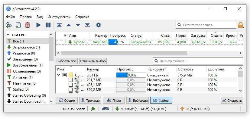 qBittorrent проверка скорости интернета