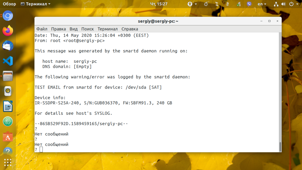 Сейчас вы думаете, да smartctl хороший инструмент, но у меня нет возможности запускать его каждый раз вручную, было бы неплохо автоматизировать все это дело чтобы программа запускалась периодически и сообщала мне о результатах проверки. И это возможно, с помощью smartd.