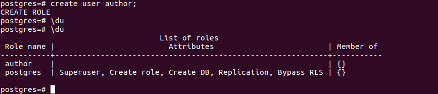 postgres=#create user author with login password 'qwerty';