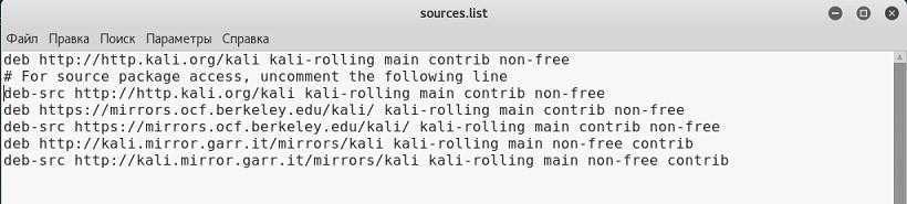 добавим сразу несколько зеркал репозиториев (хотя разрабы Кали Линукс это не поощряют); при этом скорость обновления Кали из терминала резко выросла. Видимо, скорости сервера позволяют, а народ о нём ещё недостаточно осведомлён: