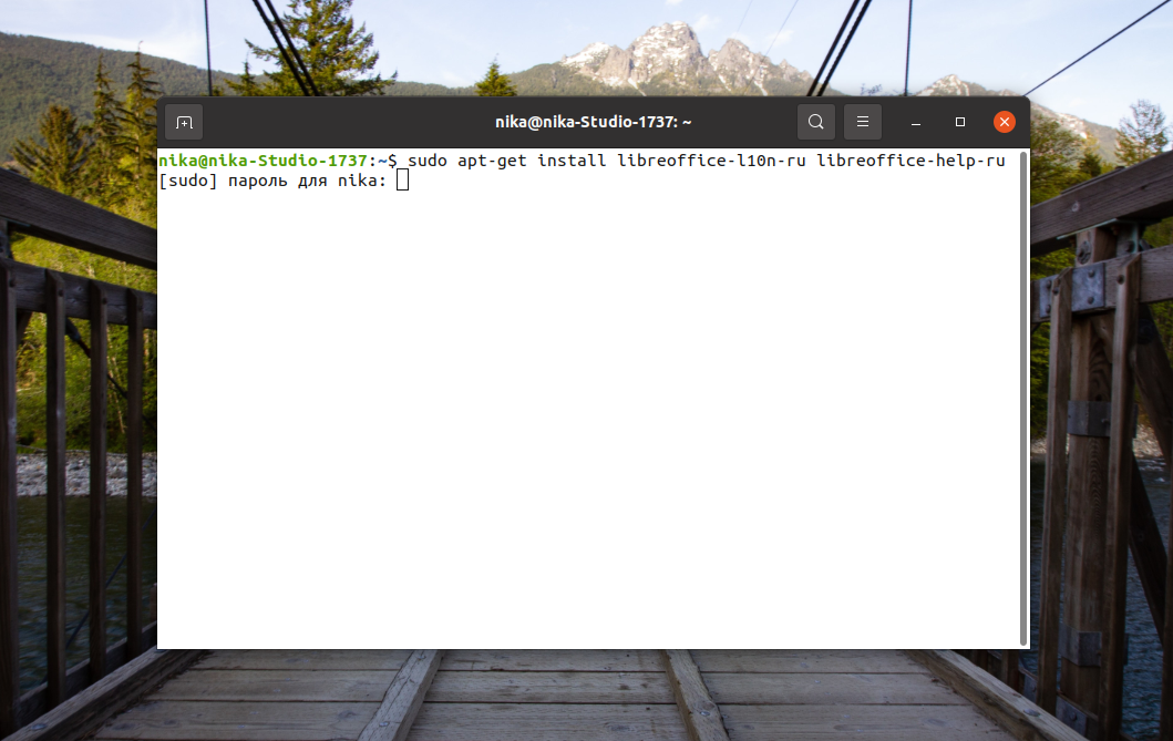 Русификацию также возможно выполнить через терминал, поставив соответствующий пакеты и настройки, выполнив команды: