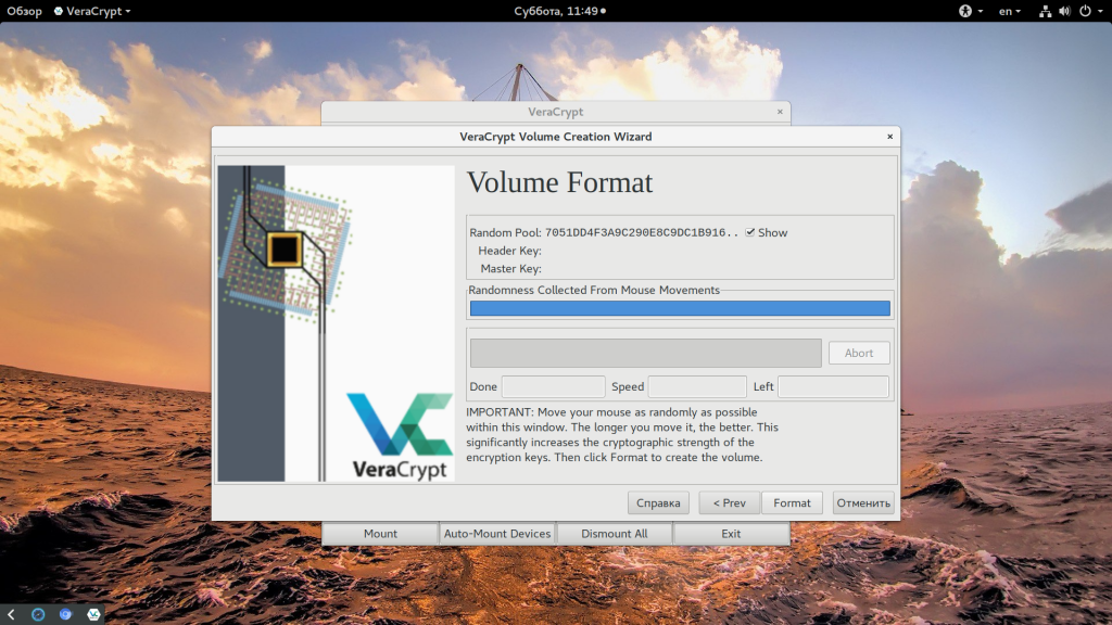 Создание тома и первое шифрование