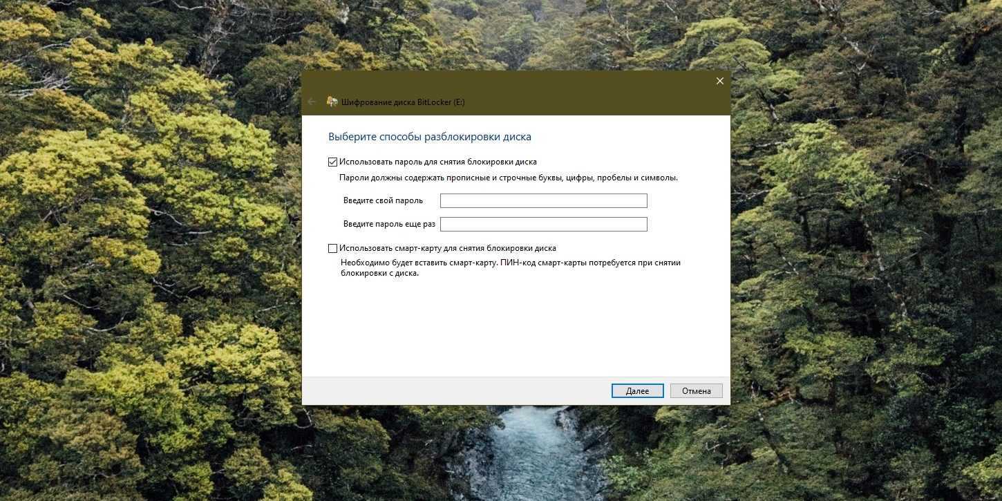 Установка пароля Bitlocker