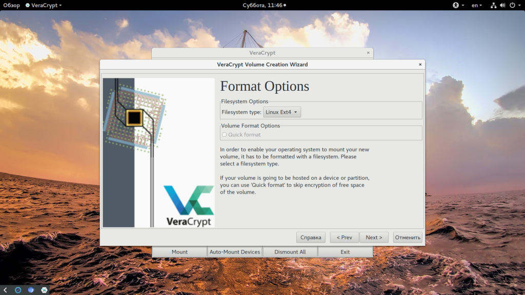 Последний шаг – это выбрать файловую систему для шифрованного раздела и отформатировать его: