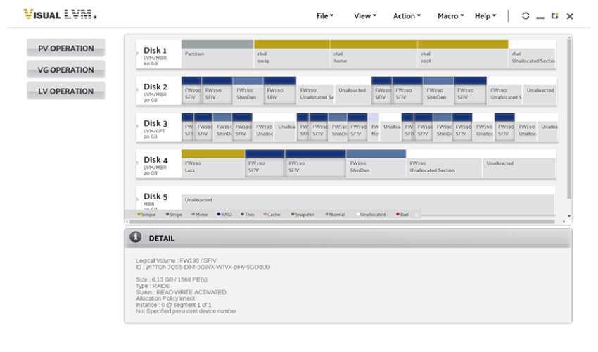 Visual LVM is commerce software. It is easy to install, download the installation package, unzip, and run the installation script. It supports all Linux platforms just like KVPM.