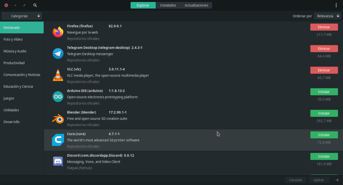 Более того, в моих тестах как на xfce-usb (откуда я пишу эту статью на ноутбуке, который немного тартан), так и на Raspberry Pi с Manjaro ARM в его редакции KDE, я смог хорошо изучить AUR, и чего-то в этом роде мне не хватает в операционных системах на базе Ubuntu. AUR es Архивный пользовательский репозиторий, и сообщество выкладывает туда практически все существующее программное обеспечение. Говорят, что, если его нет в AUR, он не существует для Linux, и Pamac Manjaro компилирует все для нас. Там мы можем найти, например, веб-браузеры, такие как Vivaldi или Brave, что также напоминает мне, что в репозиториях Manjaro доступна бесплатная версия Chromium для snapd. И нет, добавление сторонних репозиториев даже близко не похоже.