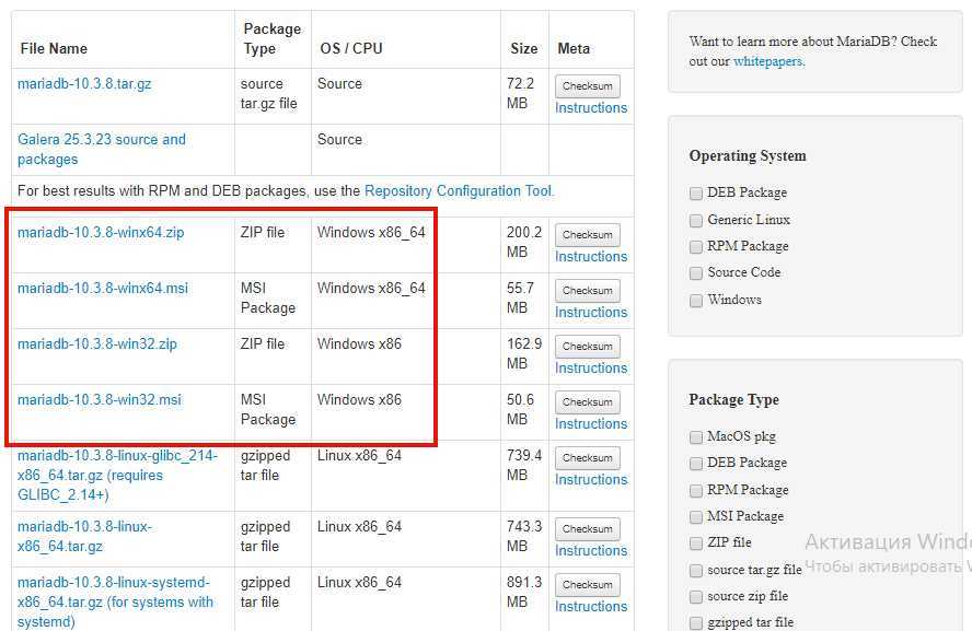 Файлы Windows x86_64 – это 64-битные версии, а Windows x86 – 32-битные.