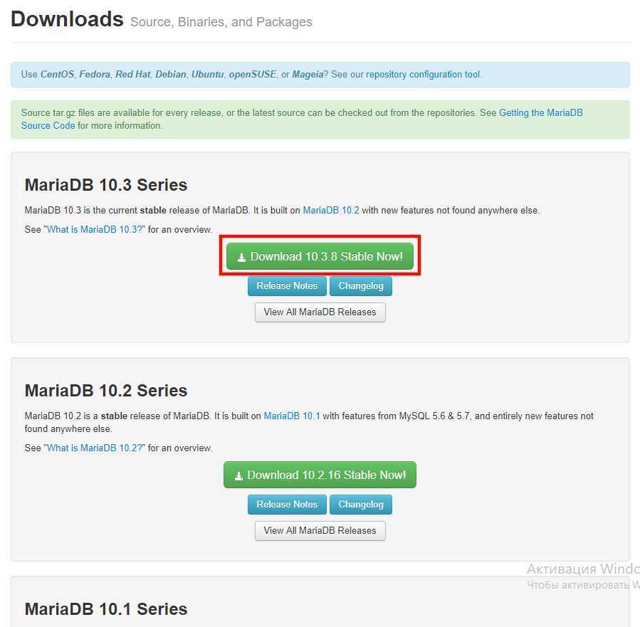 Вы увидите несколько серий – несколько мажорных версий программы. Если вам не нужна какая-то специфическая совместимость с MySQL, то просто выберите самую последнюю версию и нажмите кнопку с «Download»