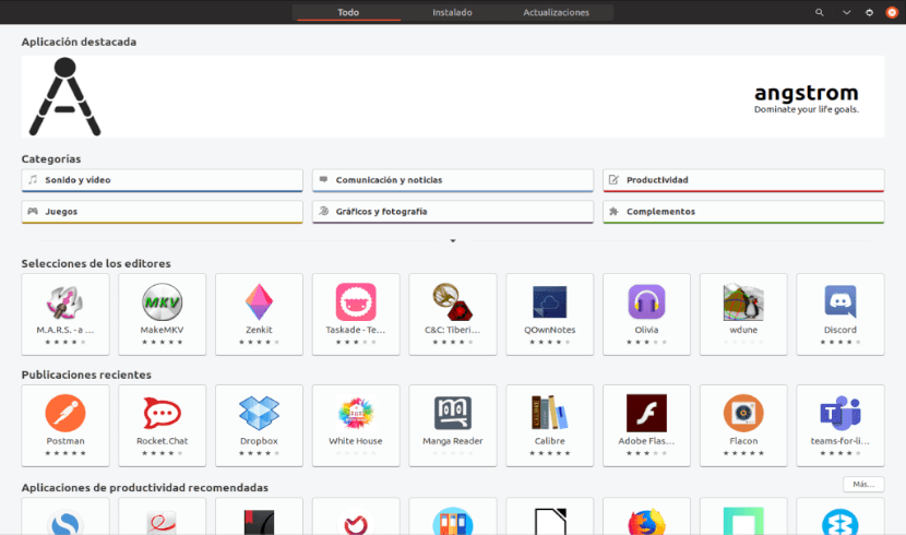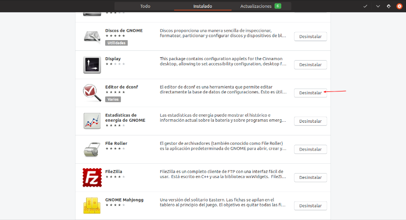 После этого вам просто нужно нажать на опцию «Instalado»Что мы найдем наверху. Этот он покажет нам все установленные приложения Ubuntu. Рядом с каждым из них появится кнопка. Если мы нажмем на эту кнопку под названием «удалять», Начнется удаление приложения.