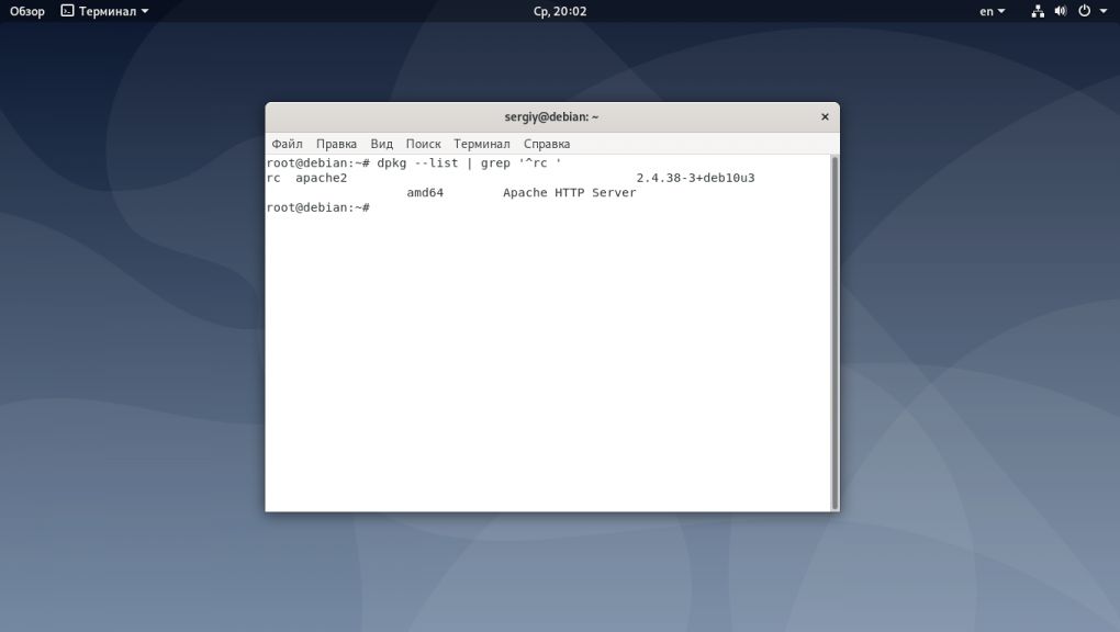 Это важный процесс, когда проводится очистка Debian 8. Если вы устанавливали много пакетов с помощью apt-get, то скорее всего, их конфигурационные файлы не были удаленны и все еще занимают место на диске. Конечно, можно использовать для удаления команду apt-get purge, но многие просто забывают об этом. Следующая команда выведет список всех пакетов, которые были удаленны, но оставили конфигурационные файлы в вашей системе: