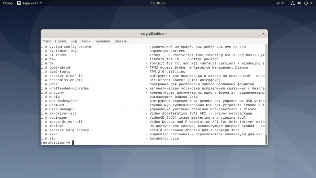 Команда выведет длинный список установленных пакетов. Это может быть хорошей идеей направить вывод, чтобы было легче читать. Или вы можете использовать для фильтрации результатов.