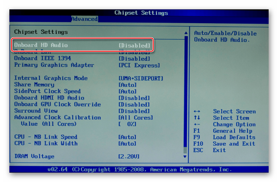 Подробнее: Отключение встроенной звуковой карты в BIOS