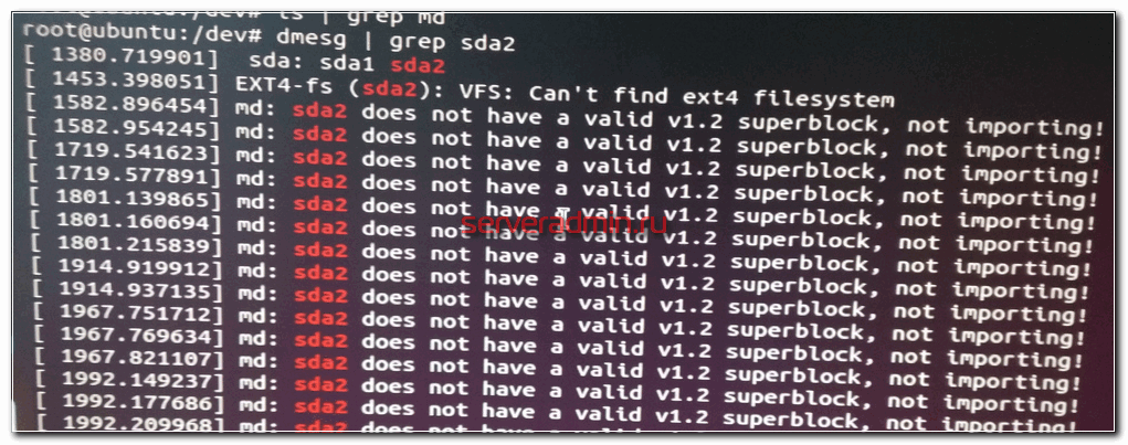 # dmesg | grep sda2 md: sda2 does not have a valid v1.2 superblock, not importing!