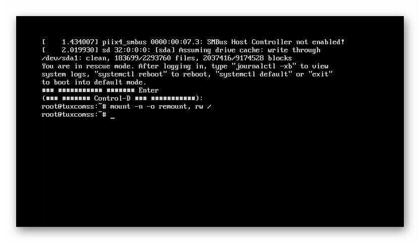 Затем введите следующую команду для монтирования файловой системы root (/) в режим чтения / записи: