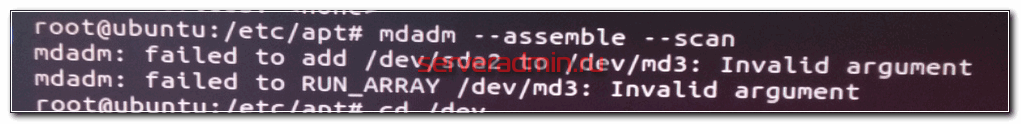 # mdadm --assemble --scan mdadm: failed to add /dev/sda2 to /dev/md3: Invalid argument mdadm: failed to RUN_ARRAY /dev/md3: Invalid argument