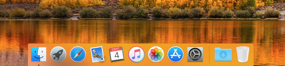 Содержимое док-панели легко настраивается. Чтобы добавить приложение в док, перетащите его из меню приложений или щелкните правой кнопкой по значку программы и выберите Добавить на док-панель. Чтобы убрать приложение из дока, потяните его значок и бросьте в пустое пространство рабочего стола, либо щелкните правой кнопкой по значку и снимите галочку с пункта Прикрепить к панели. Чтобы изменить расположение значков в доке, просто перетащите их.