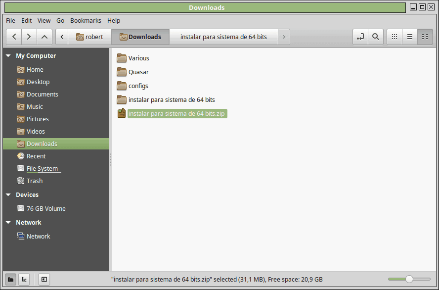Щелкните правой кнопкой мыши на загруженной папке Instalar Para System 64 бит.zip