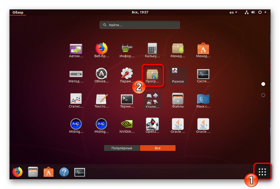 - Для начала убедитесь в том, что включена поддержка репозиториев Canonical. Они понадобятся для выгрузки необходимых пакетов из сети. Откройте меню и запустите инструмент «Программы и обновления».