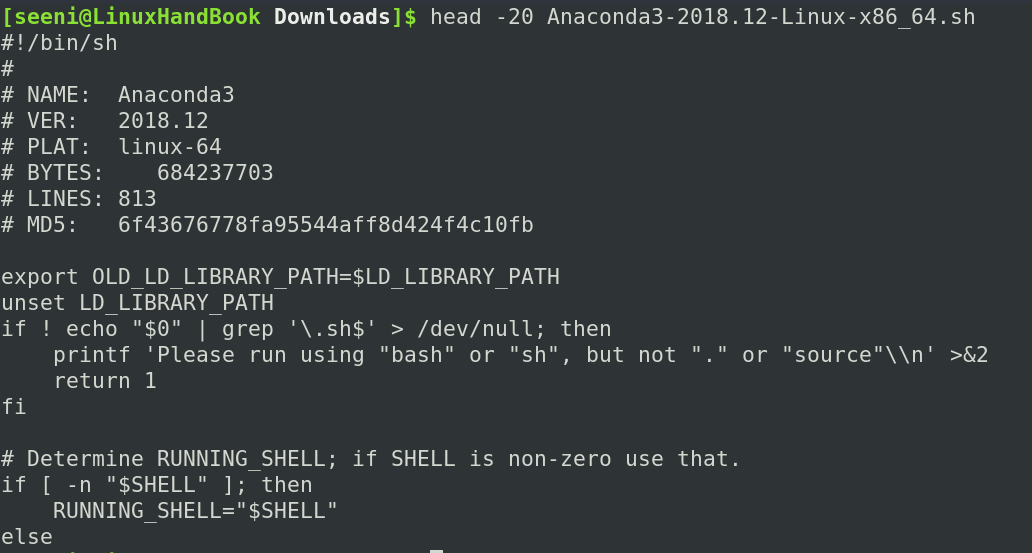 Установите Anaconda в Ubuntu — Запуск сценария установки