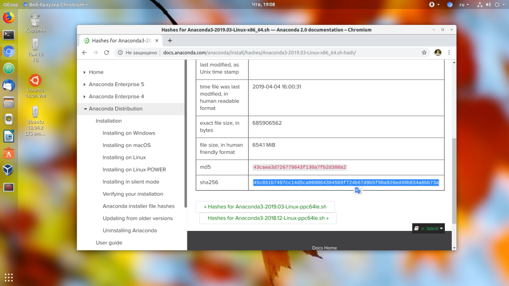 Поскольку это достаточно большой файл, после завершения загрузки желательно проверить его по контрольной суме. Найти контрольную сумму загруженного файла можно командой: