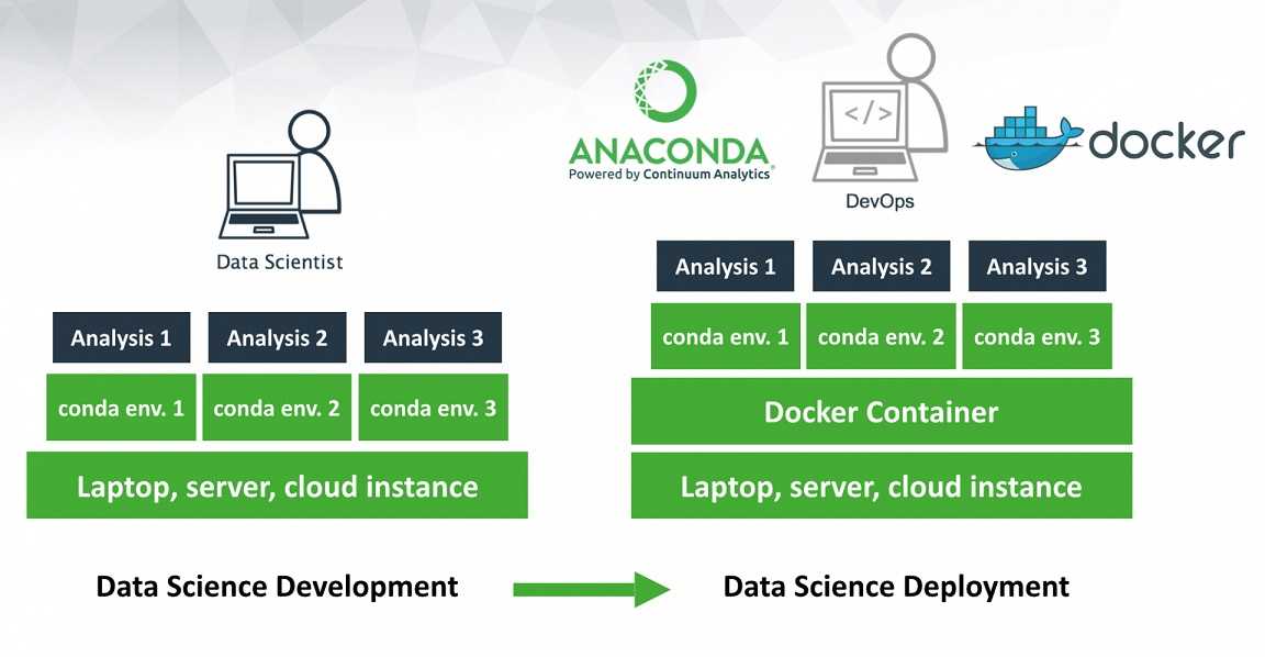Anaconda со своей изолированной средой для пакетов Data Science Python и технологией контейнеров Docker создает отличную комбинацию для масштабируемых, воспроизводимых и переносимых развертываний данных.