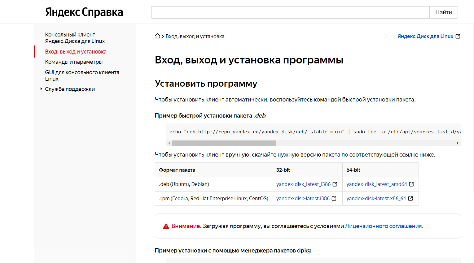 Быстрая установка пакета .DEB из репозитория Яндекса возможна с помощью команды: