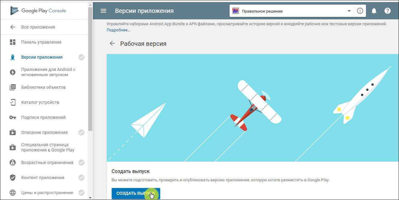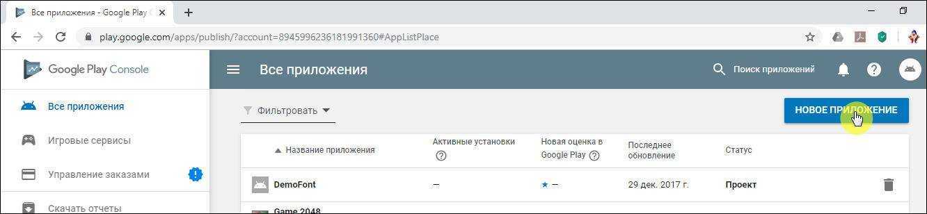 Далее, чтобы опубликовать приложение, надо зайти в аккаунт разработчика и нажать «Новое приложение». Вы попадёте в консоль разработчика: