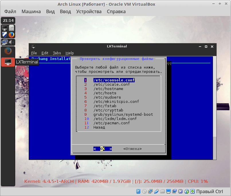 Вернитесь в главное меню установщика ОС. В пункте проверки конфигурационных файлов доступна возможность их выбора просмотра и редактирования.