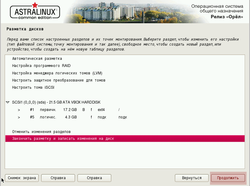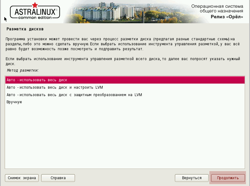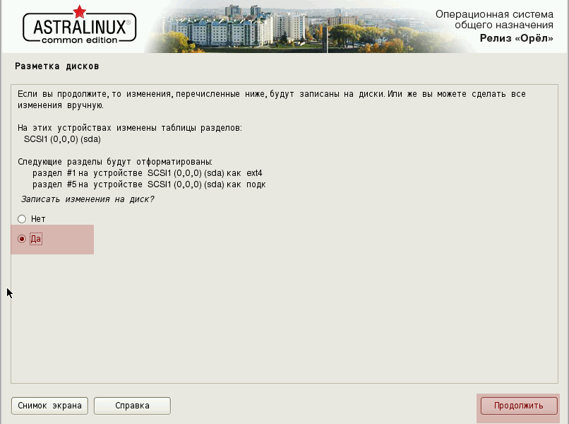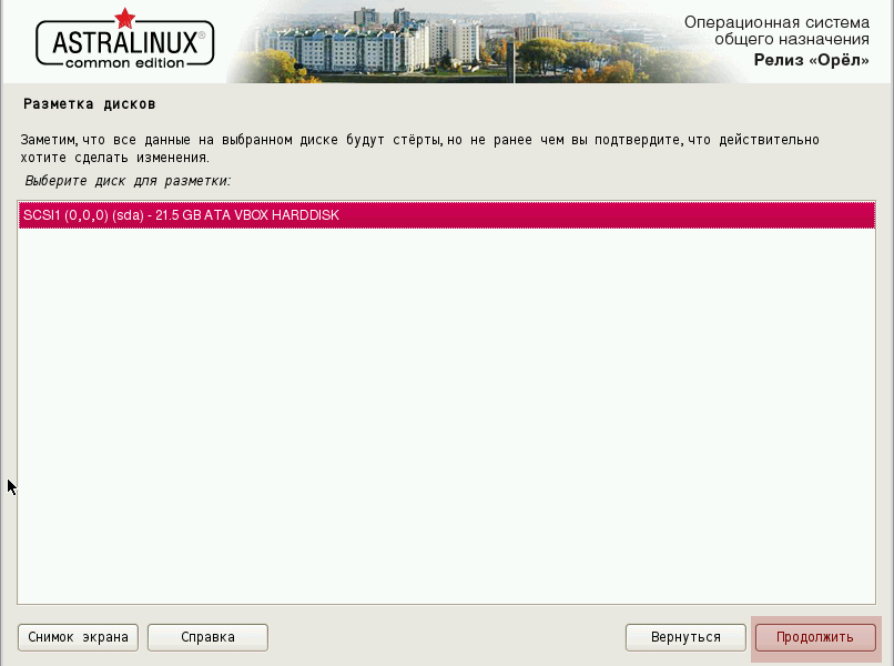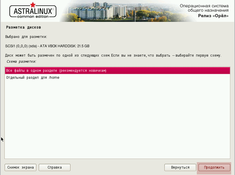 При установке должен быть отформатирован один дисковый раздел, помеченный как: