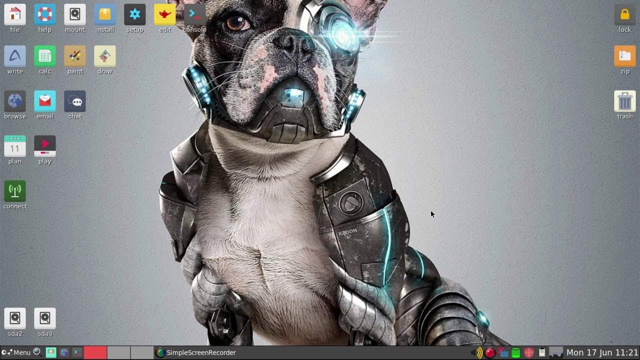 Однако, в отличие от Puppy Linux, это не похоже на собачий ужин. Оконным менеджером является Enlightenment, который, пожалуй, самый красивый из всех оконных менеджеров Linux. Есть даже эффекты прозрачности и причудливый анимированный док внизу для ваших программ.