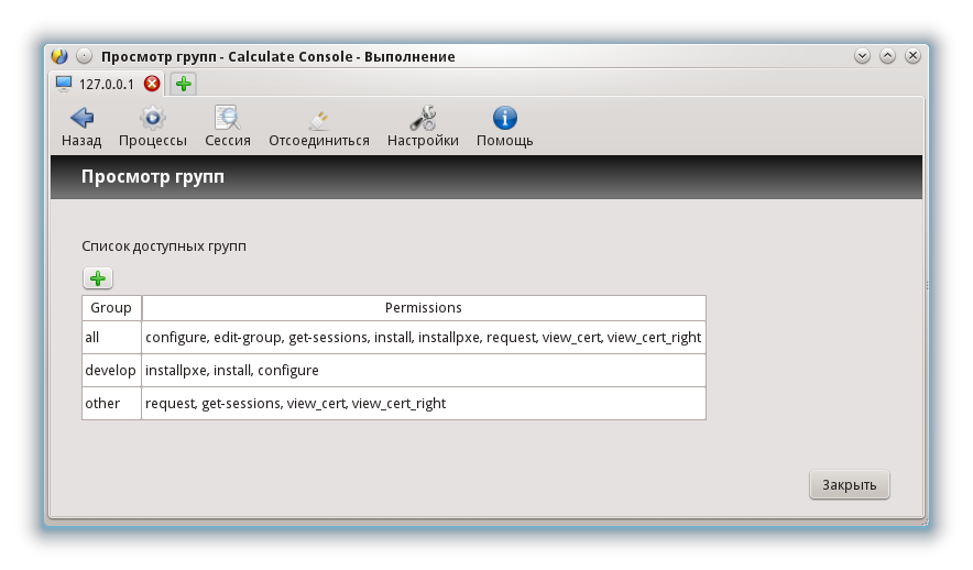Права групп служат для разграничения прав на сервере утилит и указываются в сертификате клиента. Каждой группе соответствует список прав, к которым данная группа имеет доступ.