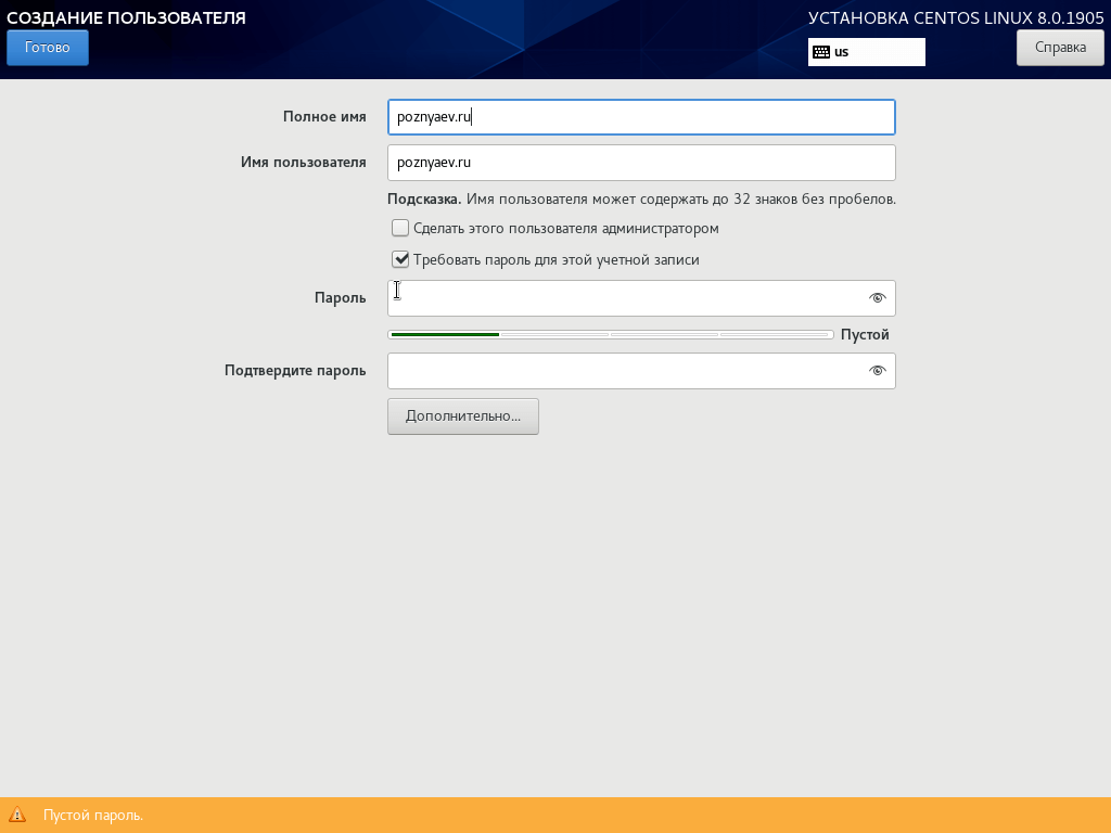 Установка CentOS 8