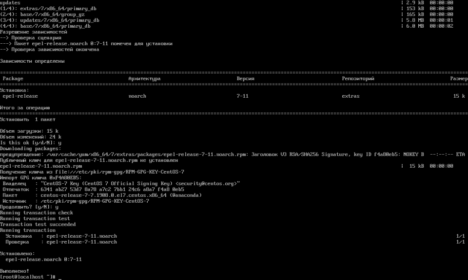После установки обновления версии дистрибутива нам необходимо установить EPEL репозиторий. Установим его следующей командой: