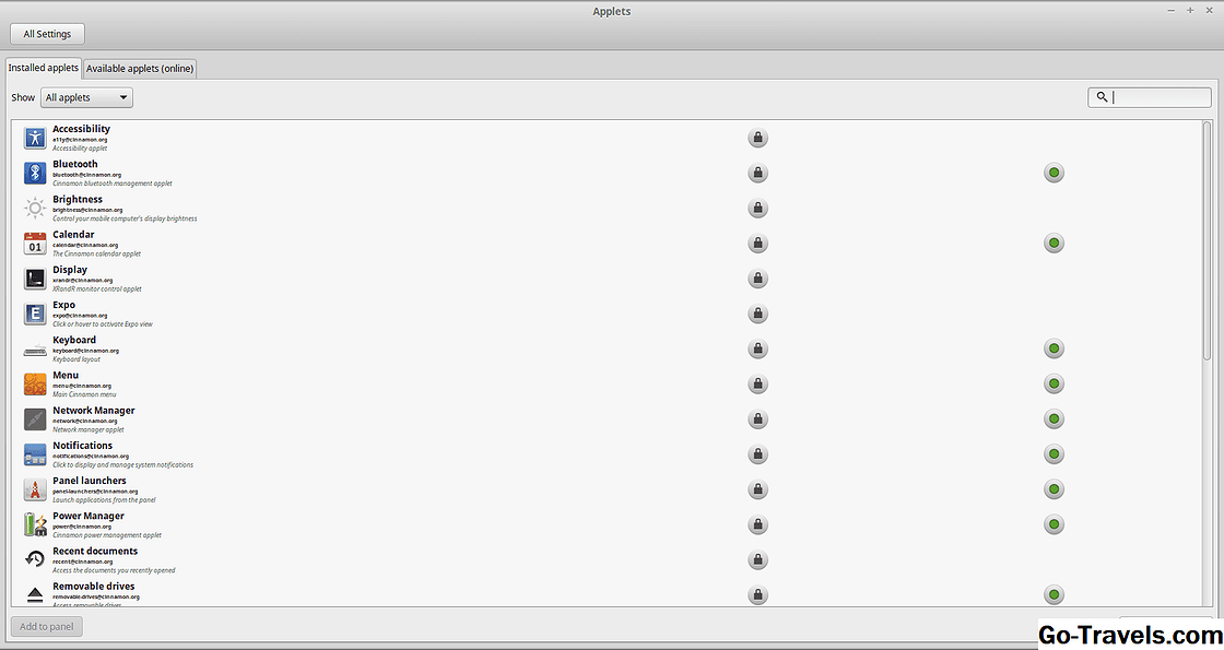На вкладке «Доступные апплеты» отображается список апплетов, которые могут быть установлены в вашей системе. Доступны грузы, но вот короткий список, чтобы вы начали: