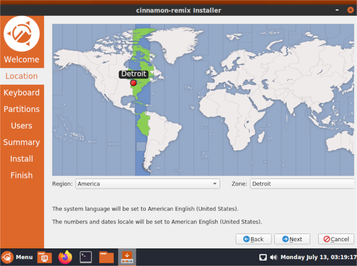 Шаг 5: После нажатия «Далее» вам будет предложено выбрать свой регион. Щелкните по нему на карте. Настройка вашего региона позволяет установщику правильно выбрать ваш часовой пояс.