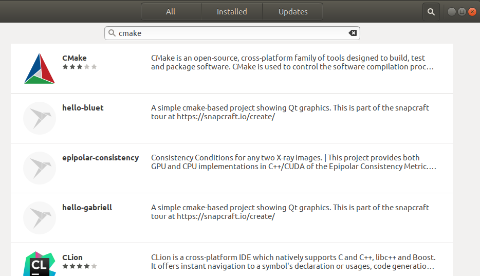 На момент написания этой статьи использовалась самая последняя версия CMake (3.15.2). Она была доступна в рамках известного всем магазина Snap Store. Ниже вы узнаете, как установить CMake через штатный в Менеджер приложений в Ubuntu.