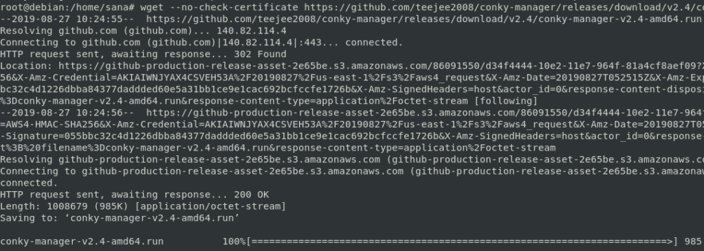 $ wget --no-check-certificate https://github.com/teejee2008/conky-manager/releases/download/v2.4/conky-manager-v2.4-amd64.run