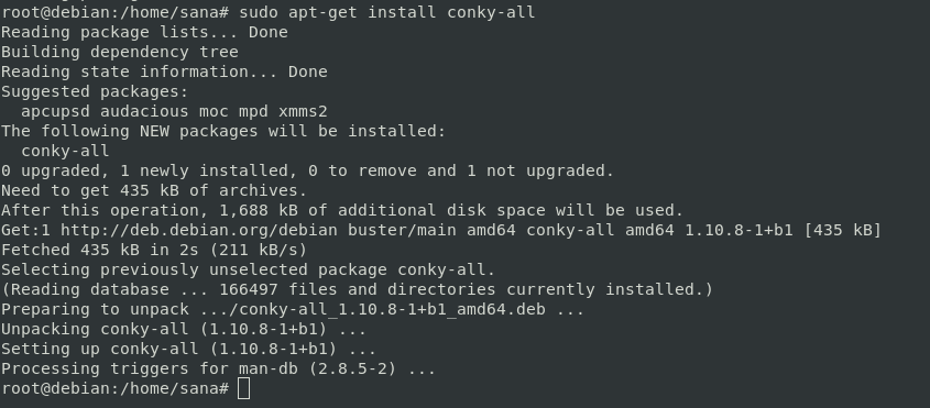 Now you are ready to install Conky; you can do so by running the following command as sudo:
