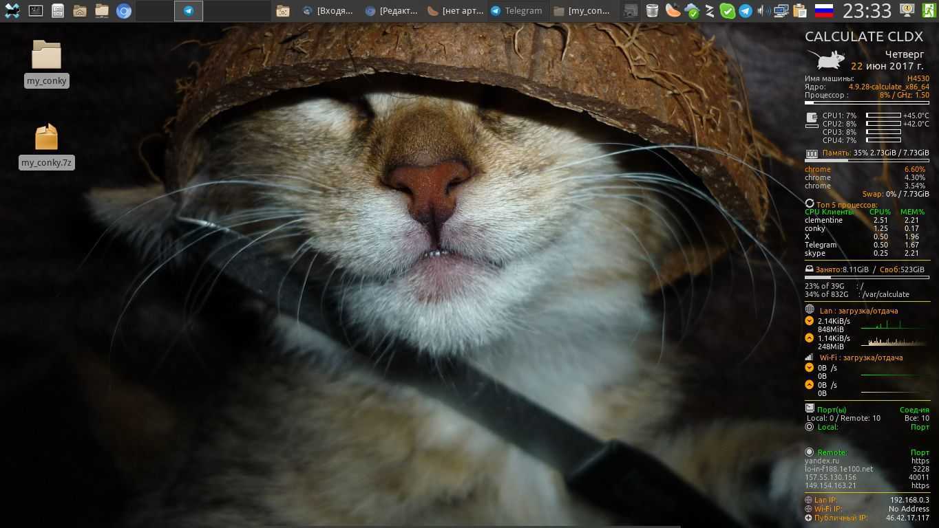 Приведу внешний вид conky, соответствующий этому .conkyrc: