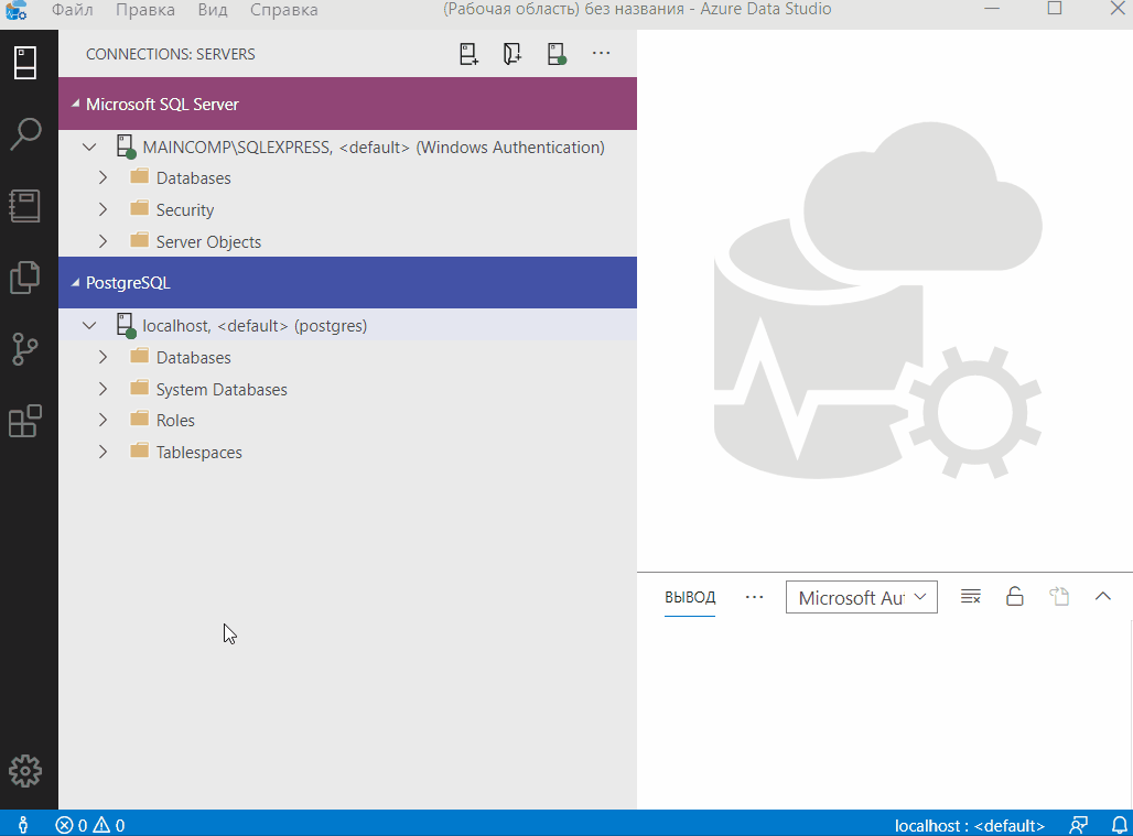 Azure Data Studio позволяет работать с базами данных Microsoft SQL Server, SQL Azure, а также с другими СУБД, например, с PostgreSQL