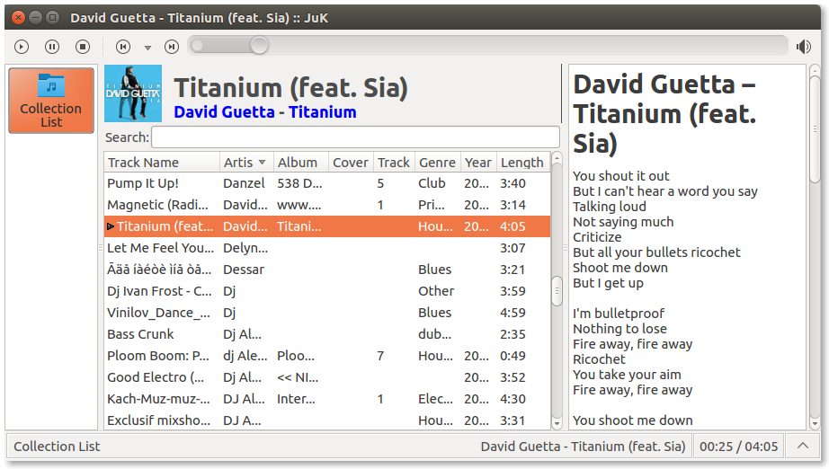 Juk — это медиаплеер для KDE который предустановлен в системе по умолчанию, но плеер обрел популярность не только на кедах, но и широко используется в Ubuntu и производных дистрибутивах основанных на Debian.