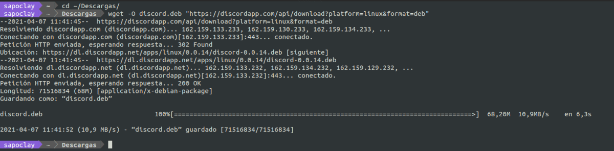 cd ~/Descargas wget -O discord.deb "https://discordapp.com/api/download?platform=linux&format=deb"